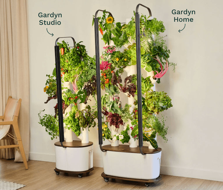 Gardyn Studio grows 16 large plants in under 2 square feet. Start now and see your first harvest in 4-5 weeks.